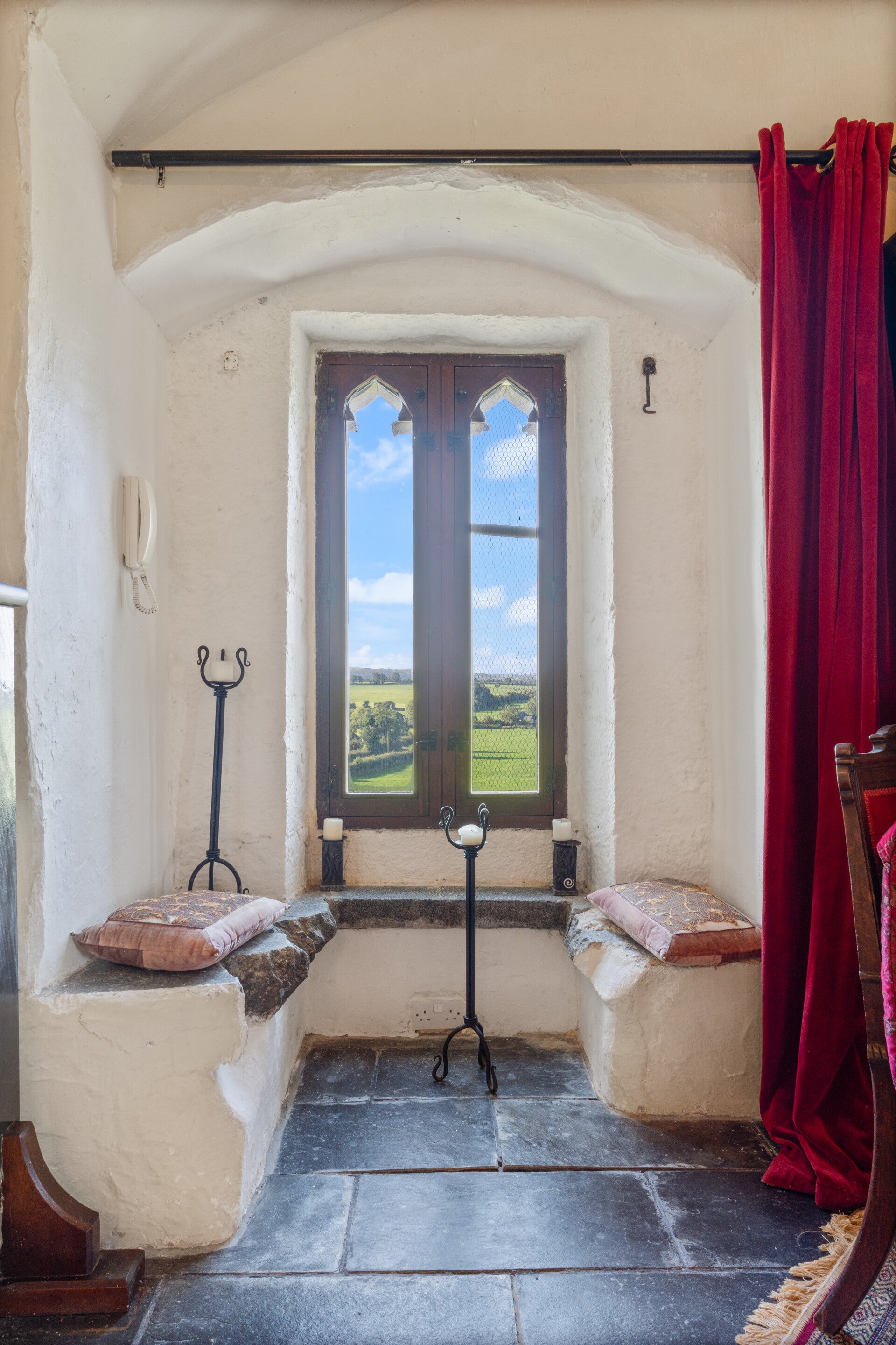 Fourth Floor: Extensive Master Bedroom/Living Suite with bath and Garderobe (WC). This lofty and elegant room offers spectacular views of the Tipperary countryside, including the Rock of Cashel.